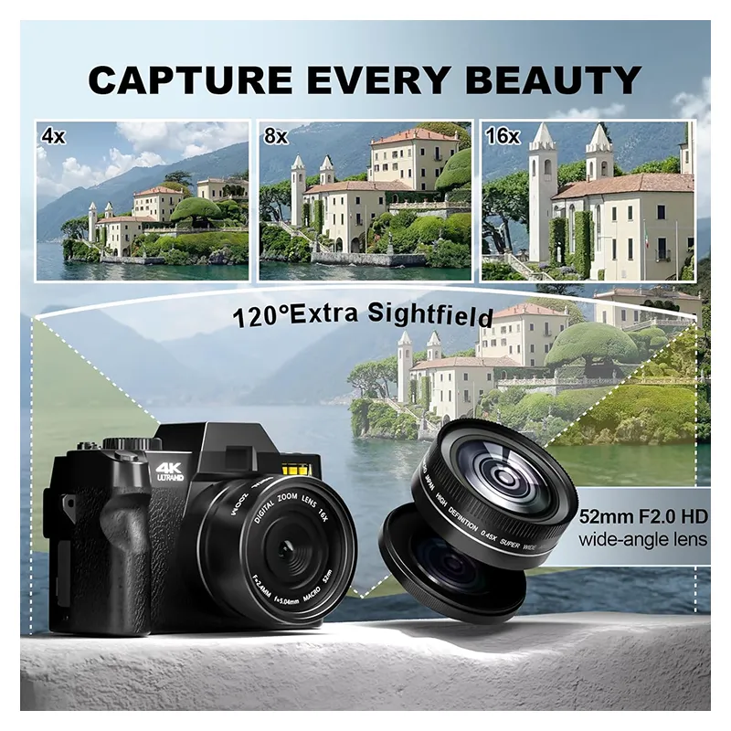 Cet appareil photo numérique 4K est conçu pour les passionnés de photo et de vidéo qui veulent une solution compacte, performante et facile à utiliser. Avec une résolution photo de 48 MP, une vidéo 4K à 60 FPS et un écran pivotant à 180°, il est idéal pour filmer, vlogger, prendre des portraits nets ou partager vos contenus instantanément via Wi-Fi.