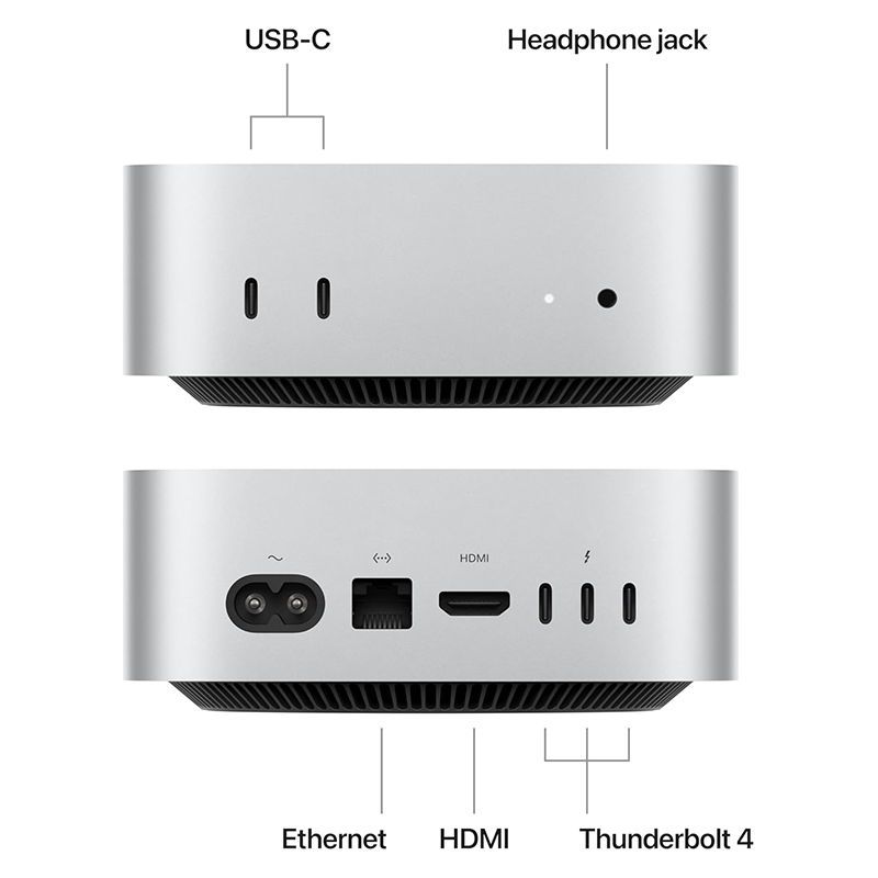 Apple Mac mini M4 – 10-cœurs CPU / 10-cœurs GPU – 16 Go RAM – 256 Go SSD – MacOS – Connectivité Thunderbolt / HDMI
